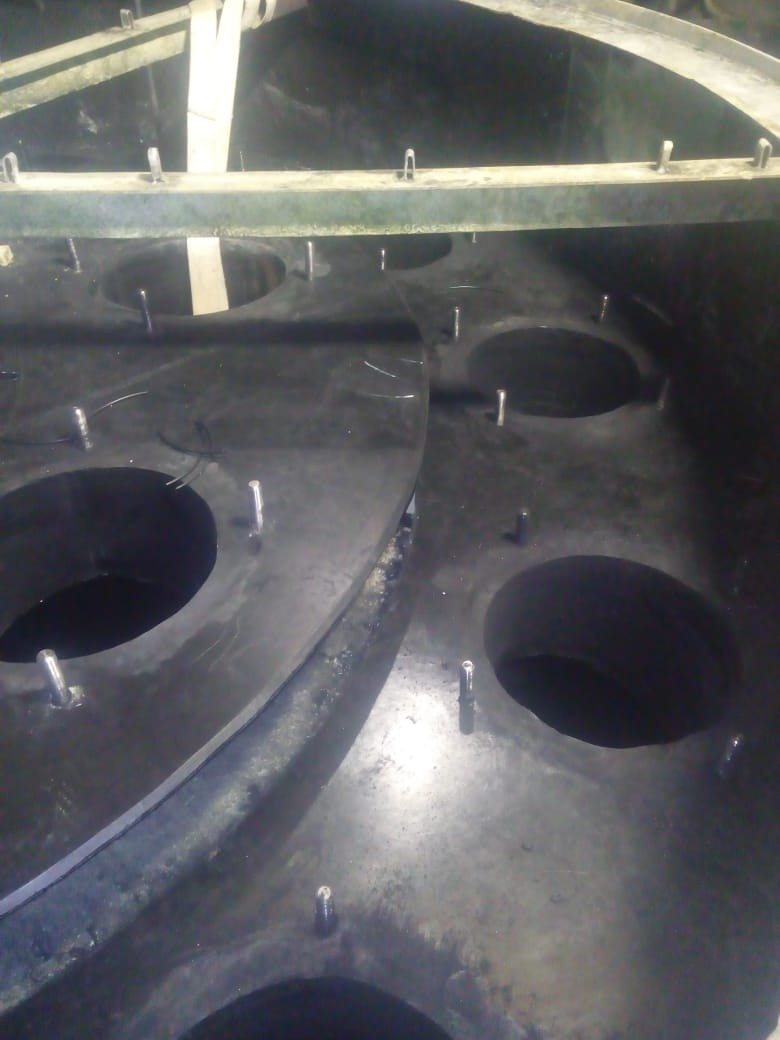 Скруберы являются полным аналогом оборудования из нержавеющей стали, пришедшего в негодность из-за коррозии. Толщина внутренней стенки 50мм, толщина всего корпуса составила 150мм. Особенность усиления позволяет оборудованию быть устойчивым не только к агрессивным средам, но и к термической нагрузке, а также к внешним механическим воздействиям. По заявке заказчика было реализовано размещение диффузоров из нержавеющей стали во внутренней части Скрубера. Изготовление Пенных Скруберов - один из уникальных проектов РИКАЗ.